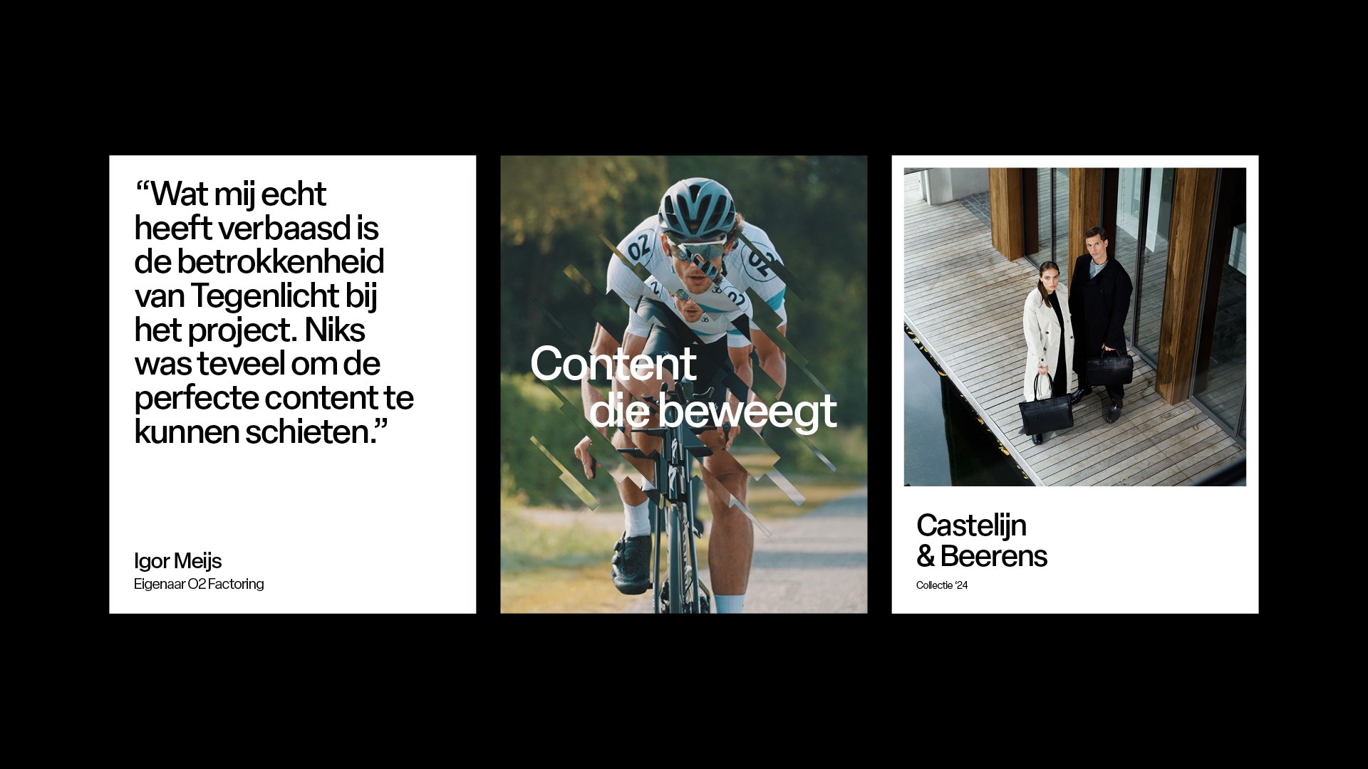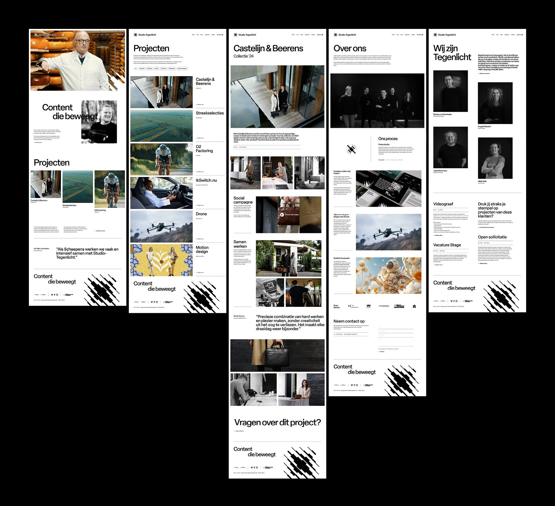 De visuele identiteit is strak en clean, waardoor de aandacht naar de beelden gaat. Tegelijkertijd geven de unieke uitlijningen, subtiele animaties en zorgvuldige composities het design karakter.