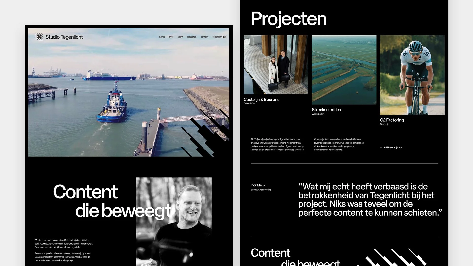 Het webdesign toont de expertise van Studio Tegenlicht. Grote titels en constante bewegingen van blokken en teksten maken het ontwerp spannend, zonder het minimalisme aan te tasten.