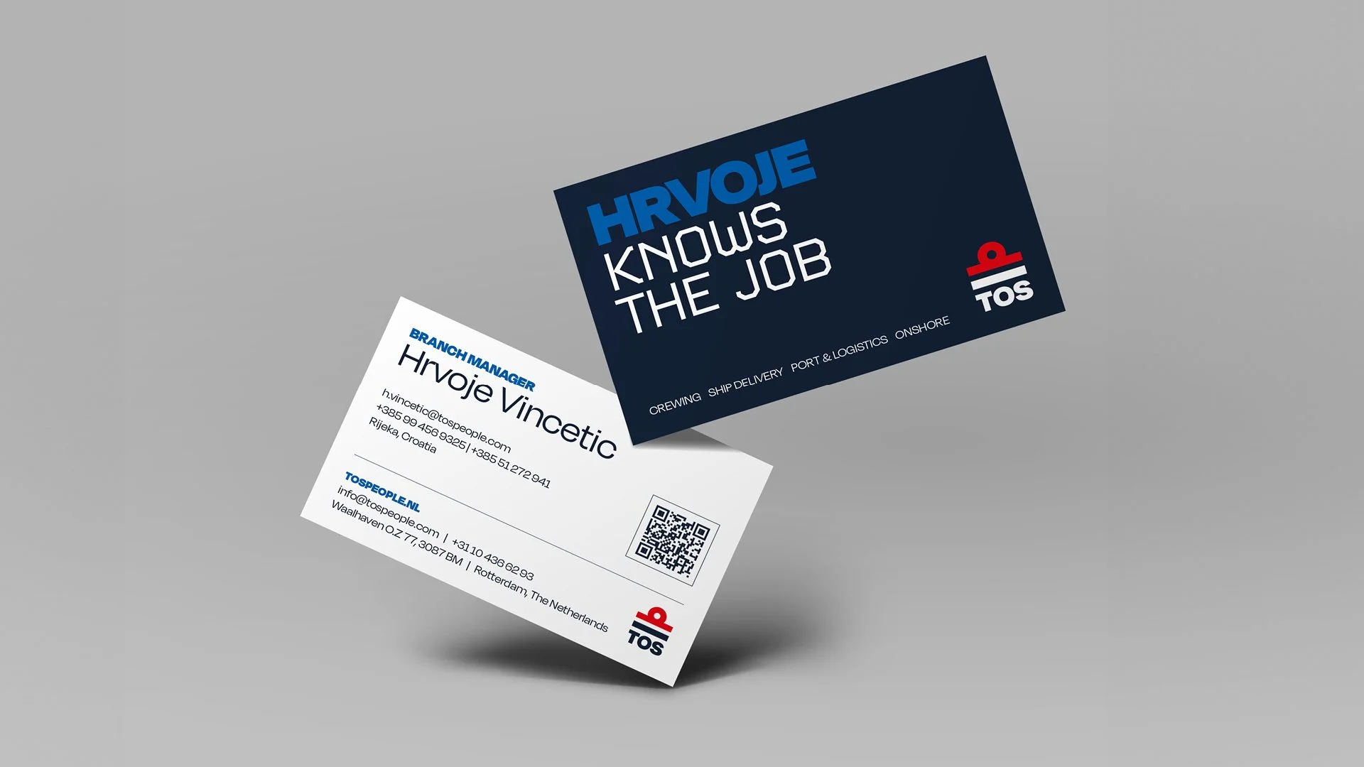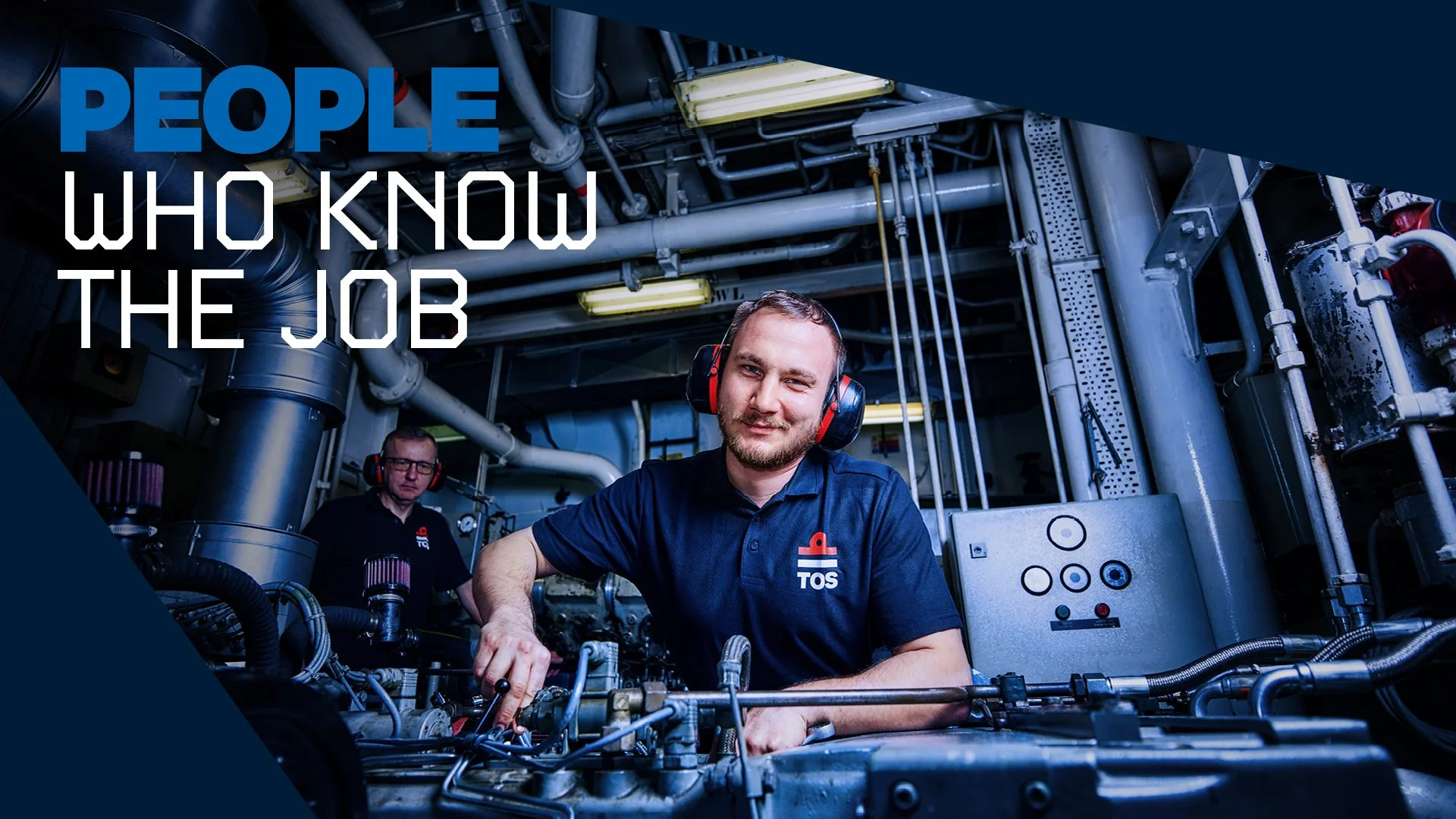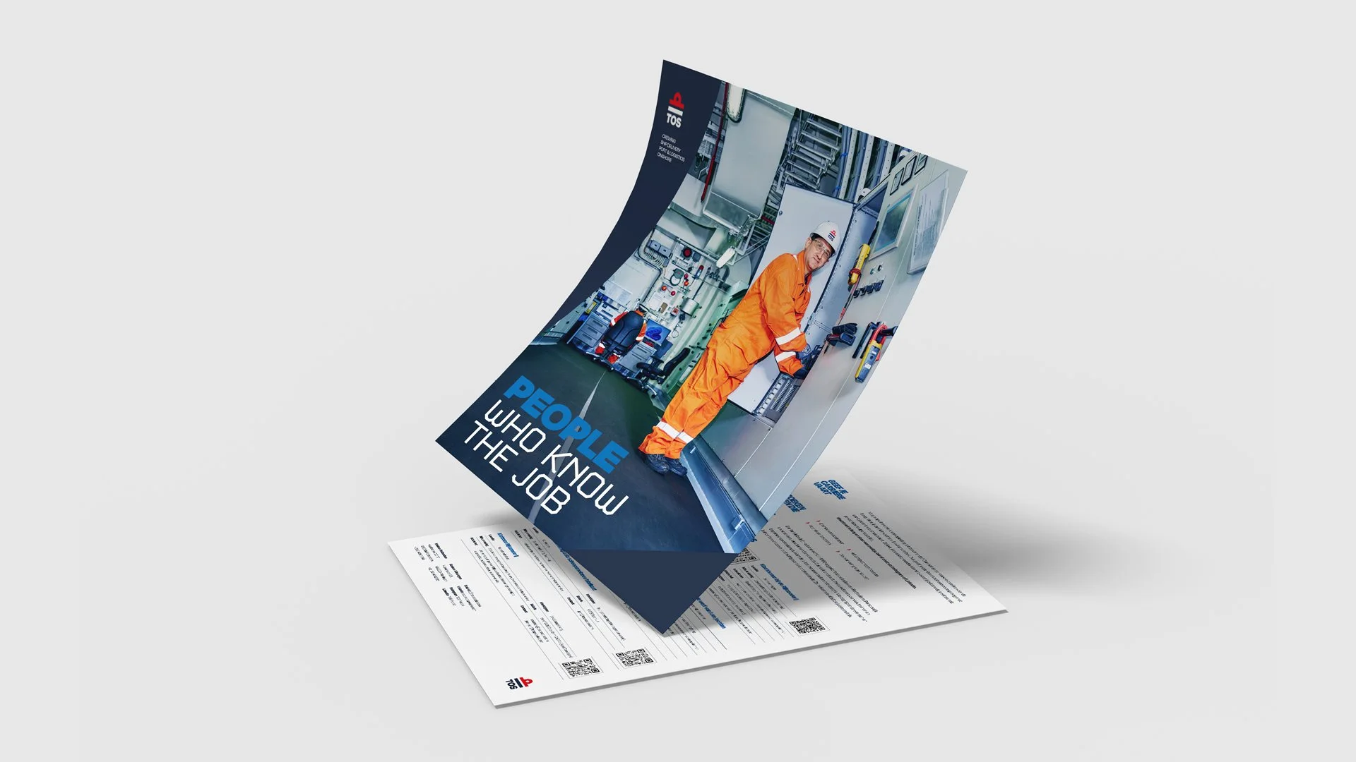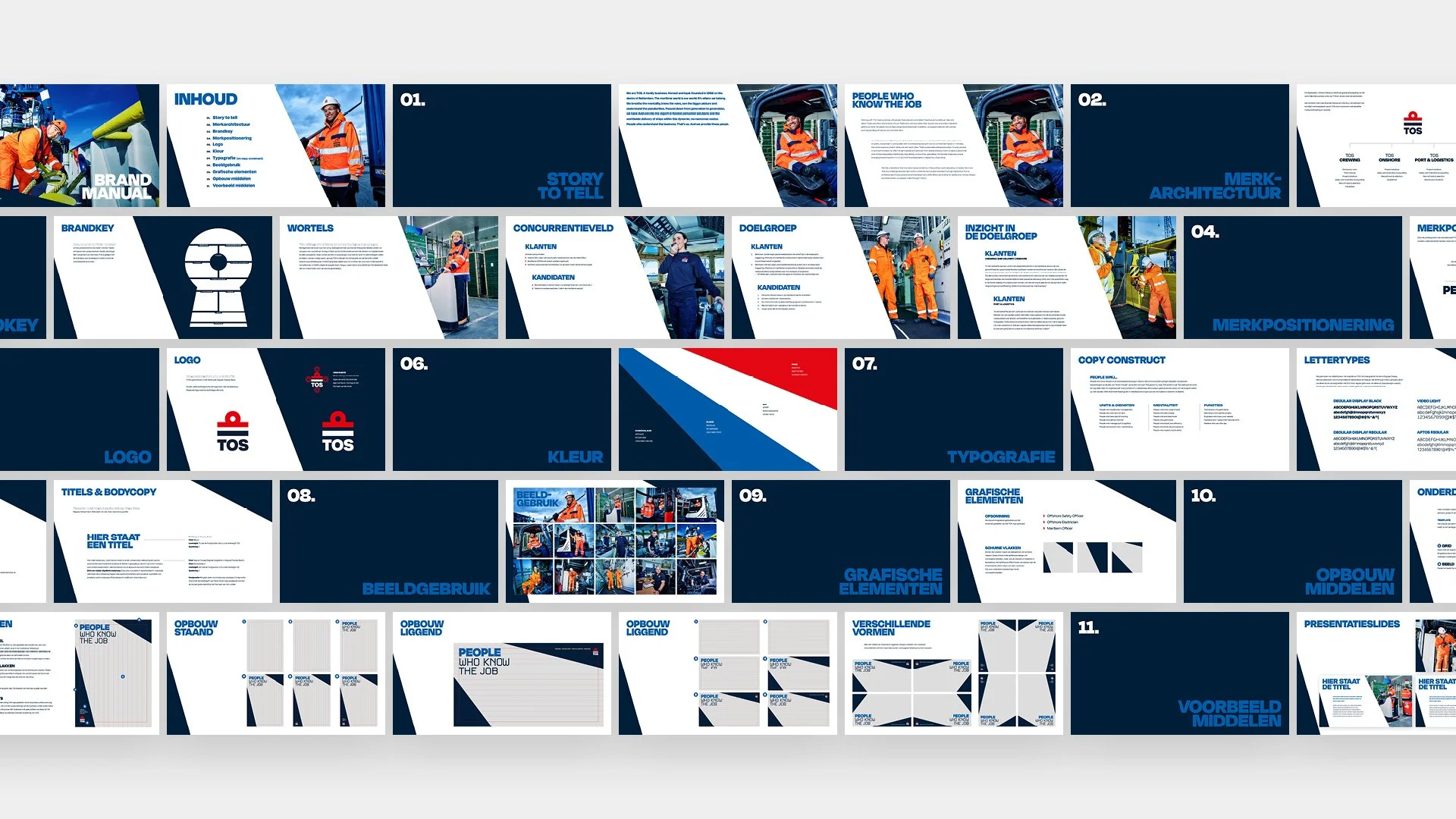 TOS levert mensen aan bedrijven binnen de maritieme sector. De kracht van TOS zit dan ook echt in de mensen zelf. Het concept ‘People who know the job’ zet hen in de spotlight – en de visuele stijl moest dat ook uitstralen. Dit heb ik gedaan met het lighthouse-effect (maritiem, lighthouse... je snapt ’m). Binnen deze simpele maar duidelijke stijl wordt de focus direct naar de mensen getrokken.